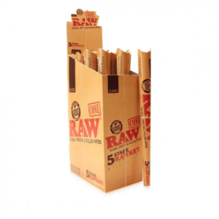 The RAW 5-Stage Rawket contains pre-rolled hemp cones, each one larger than the previous. Sizes include 1 1/4, King Size, the Peacemaker (7 inches), the Emperador (9 inches) and the Supernatural (12 inches)!