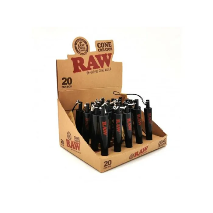 This little RAW Cone Creator is the perfect tool for making your own cones on the go! Just roll a tip and slip it into the hole (hah). Then wrap your RAW paper around the Cone Creator. Line up the bottom of the paper with the base of the tip. Roll it tight, and lick and stick the gumline. Then just pull the rope while holding the exposed part of the paper tip. Voila, you have a RAW Cone!