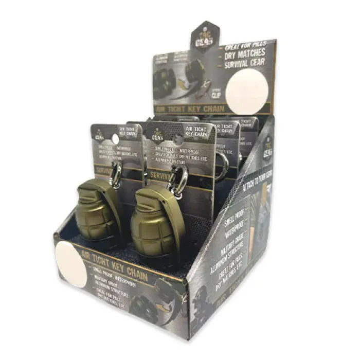 Grenade Storage Keychain – great gift for all your friends! Designed with a storage compartment as a carry-all for small items you might take with you to the range, gym, concerts or general outdoor.