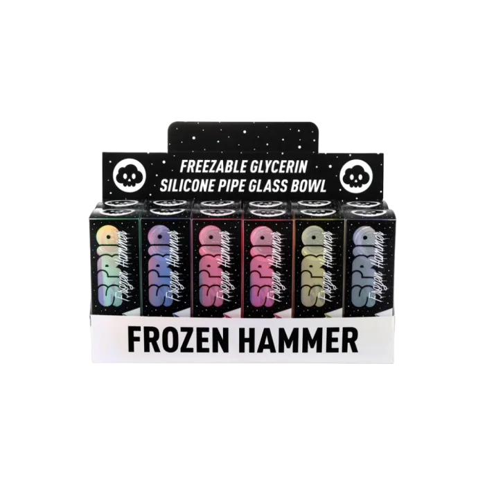 Frozen Hammer is filled with liquid glycerin that you can stick in the freezer for super chill, smooth smoke sessions. It has an inner coil that helps keep the piece cold and a flat, comfortable mouthpiece. The glycerin freezes after about an hour in the freezer.
